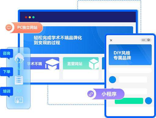 提供裝修模板,零門檻搭建官網,結合小程序、公眾號,建立營銷、支付為一體,PC、WAP、APP、小程序的多端發展的直營平臺。